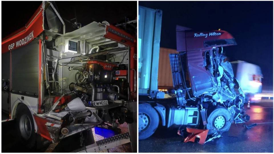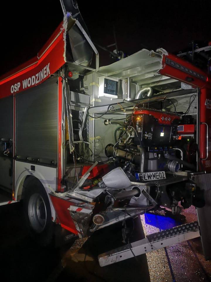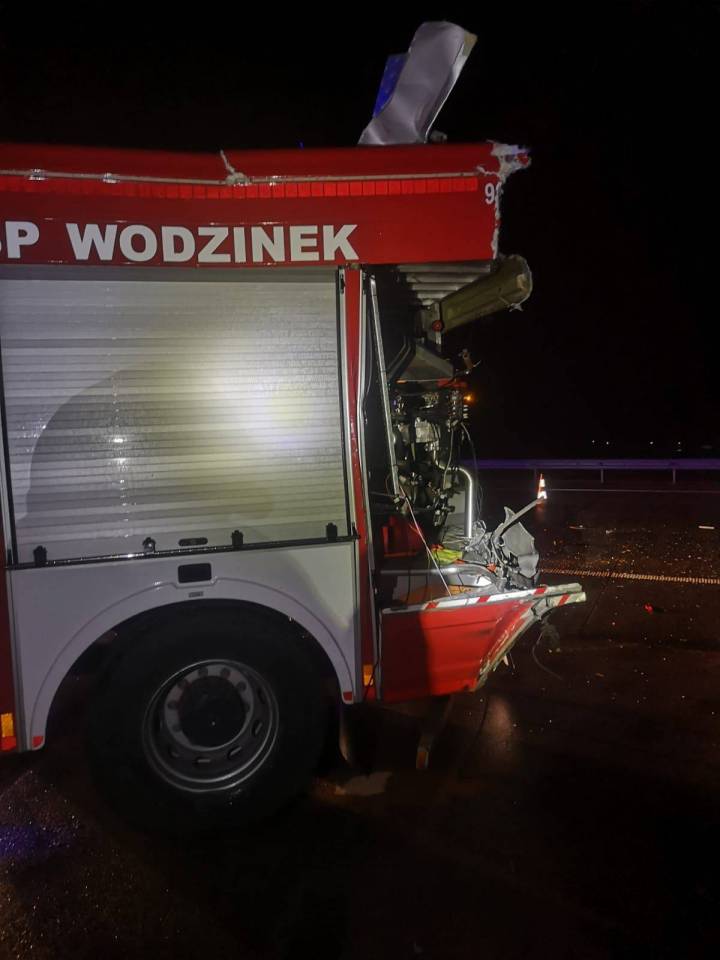 Do groźnie wyglądającego zdarzenia doszło w powiecie łódzkim wschodnim na autostradzie A1. Strażacy ochotnicy z OSP Wodzinek wracali z wcześniejszej kolizji, gdy w tył ich samochodu gaśniczego z impetem uderzyła ciężarówka. Na szczęście nikt nie odniósł obrażeń, jednak oba pojazdy zostały poważnie uszkodzone.