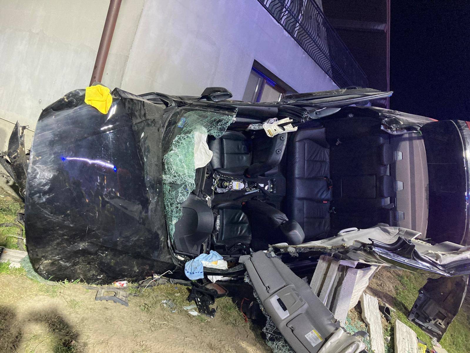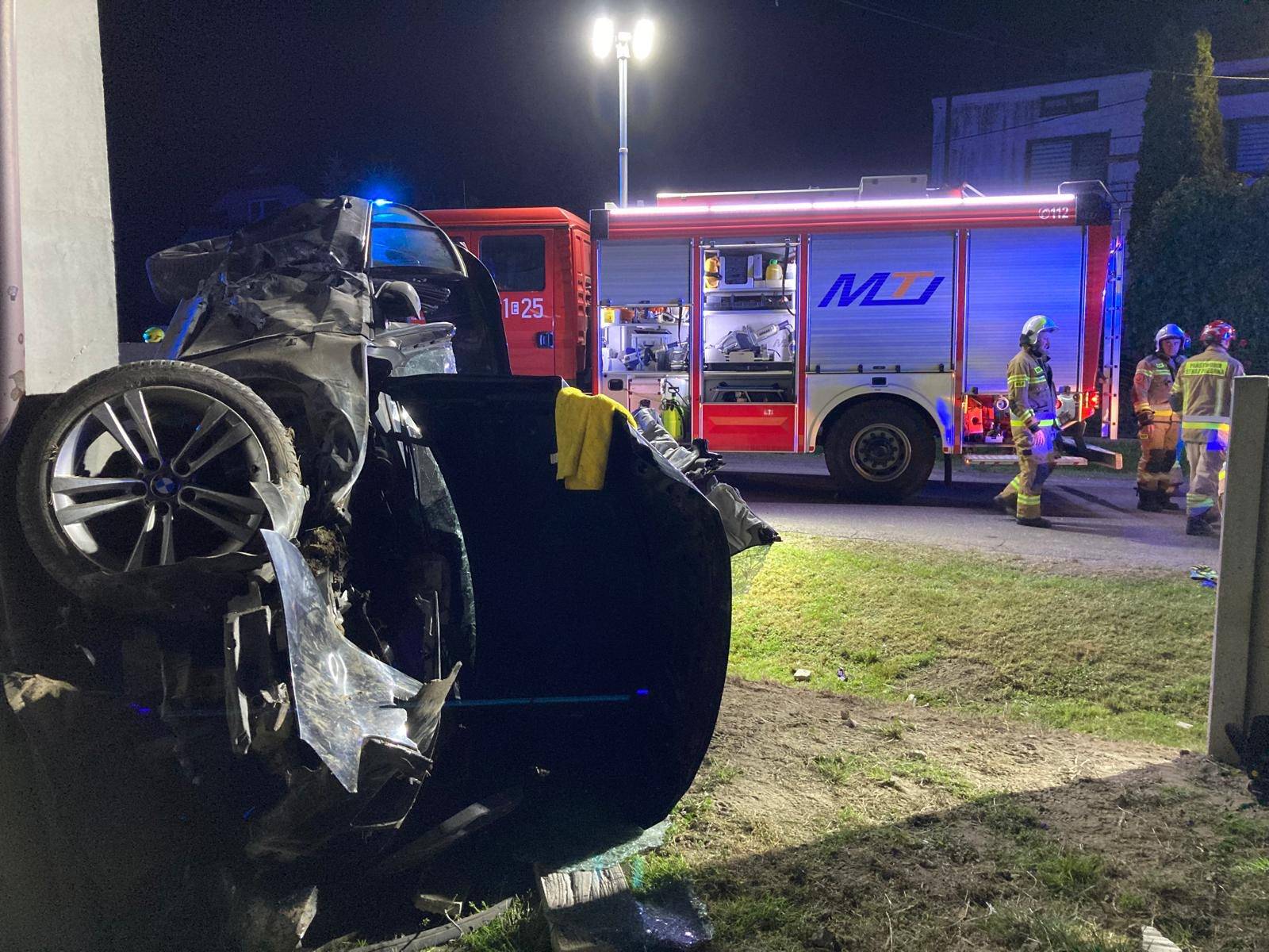 Drogowy koszmar w Woli Jankowskiej. Roztrzaskane na płocie BMW, pięcioro nastolatków w szpitalu! [Foto]