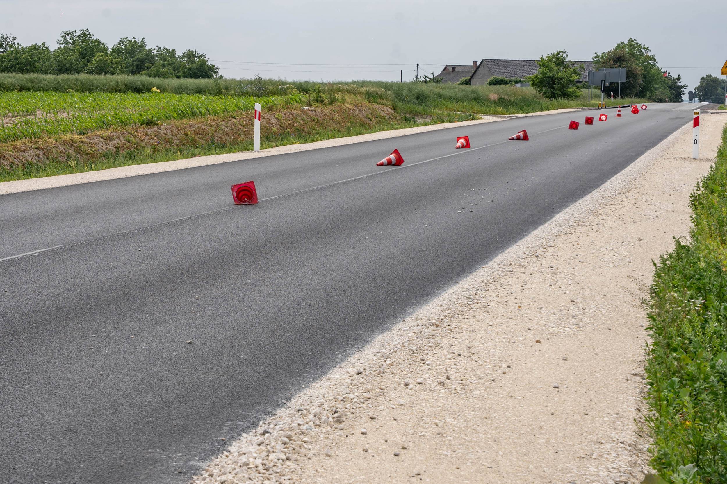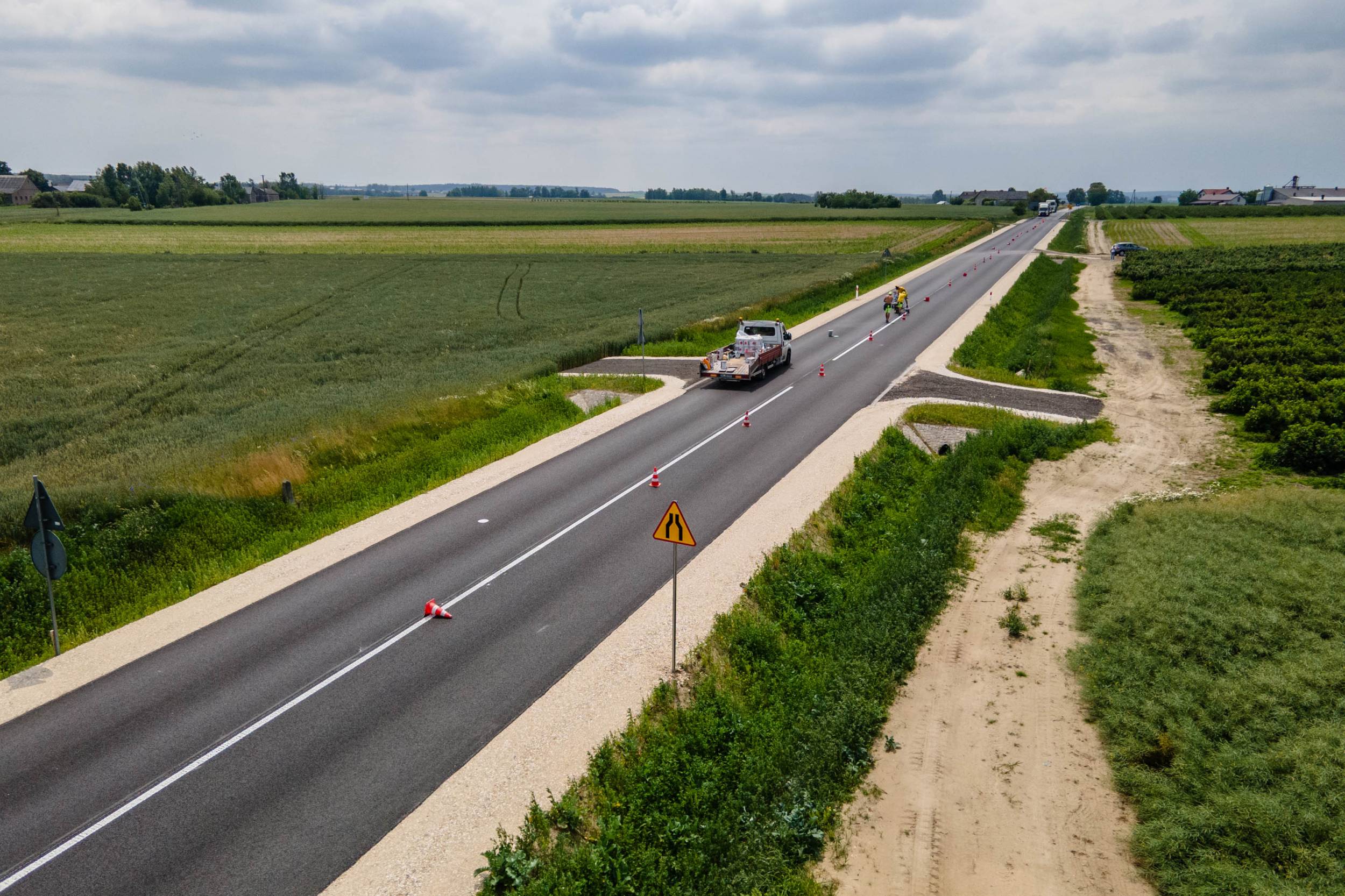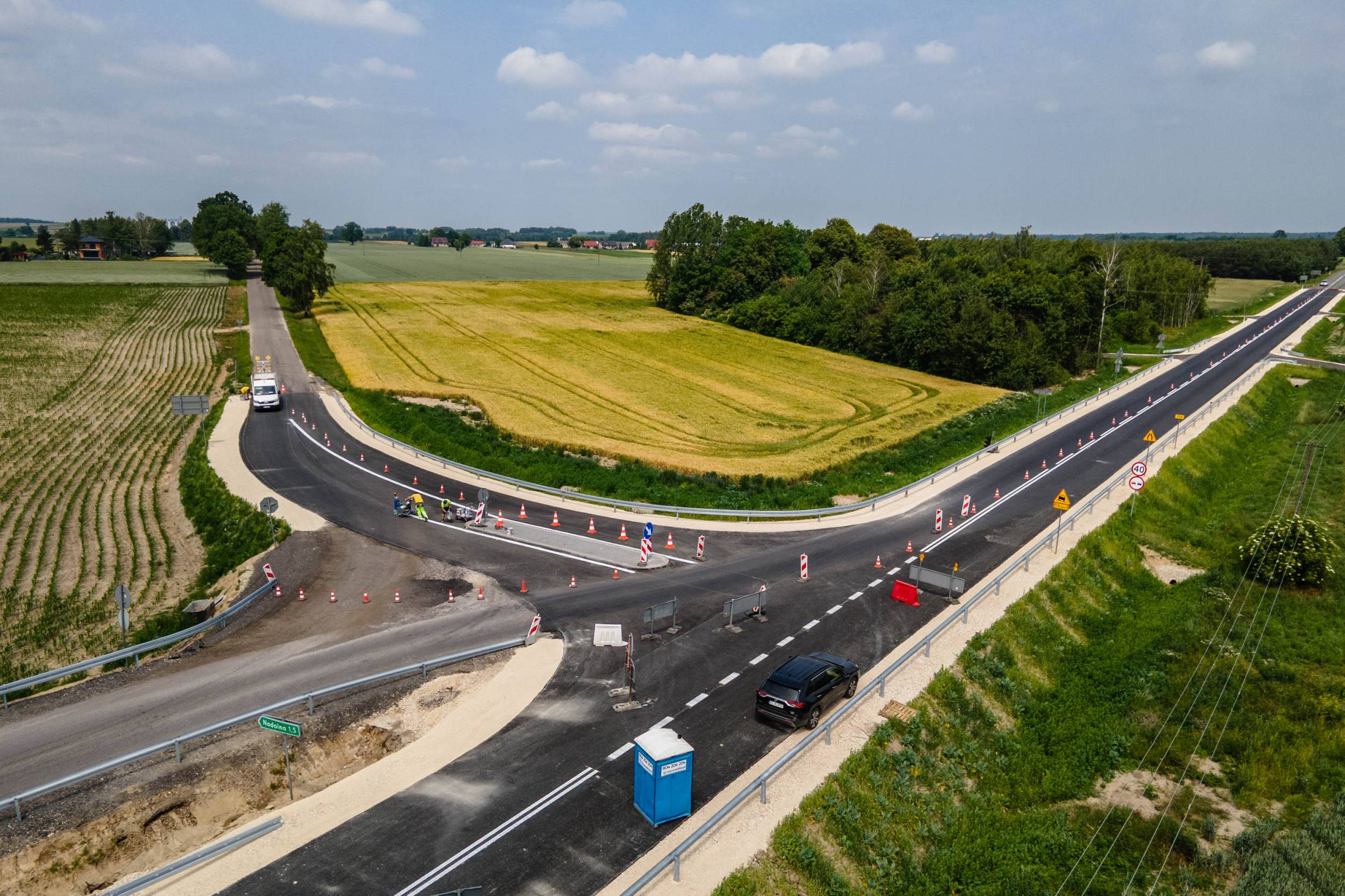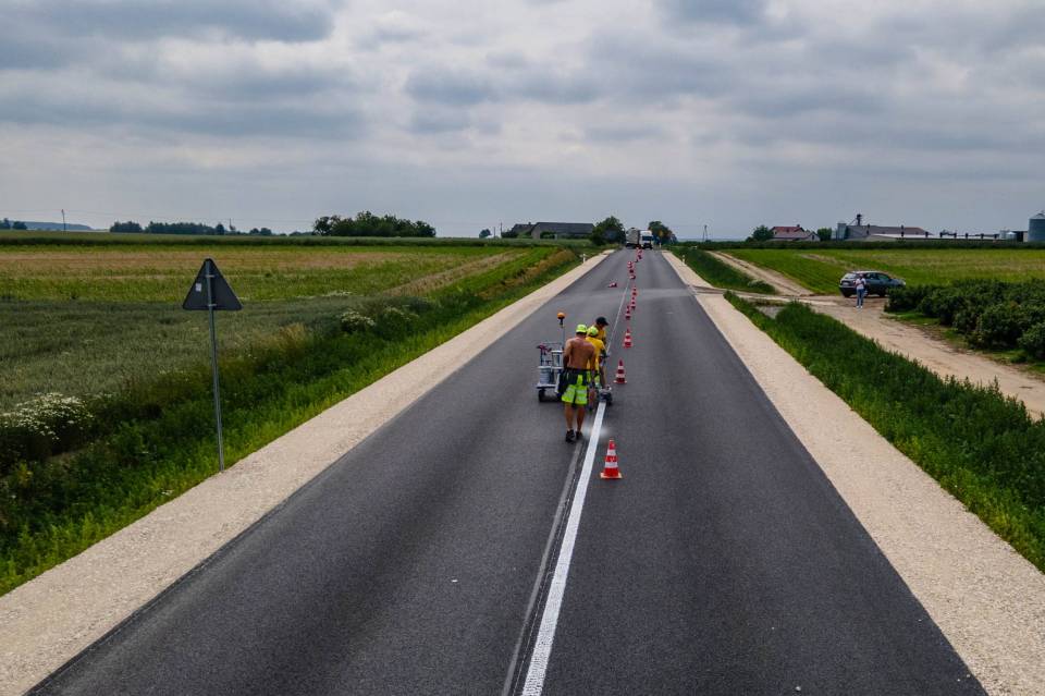 Obecnie trwają prace związane z malowaniem oznakowania poziomego – to jeden z ostatnich etapów inwestycji. Głównym elementem projektu był nowy przepust drogowy, który zastąpił wysłużony most z 1947 roku, znajdujący się w złym stanie technicznym.