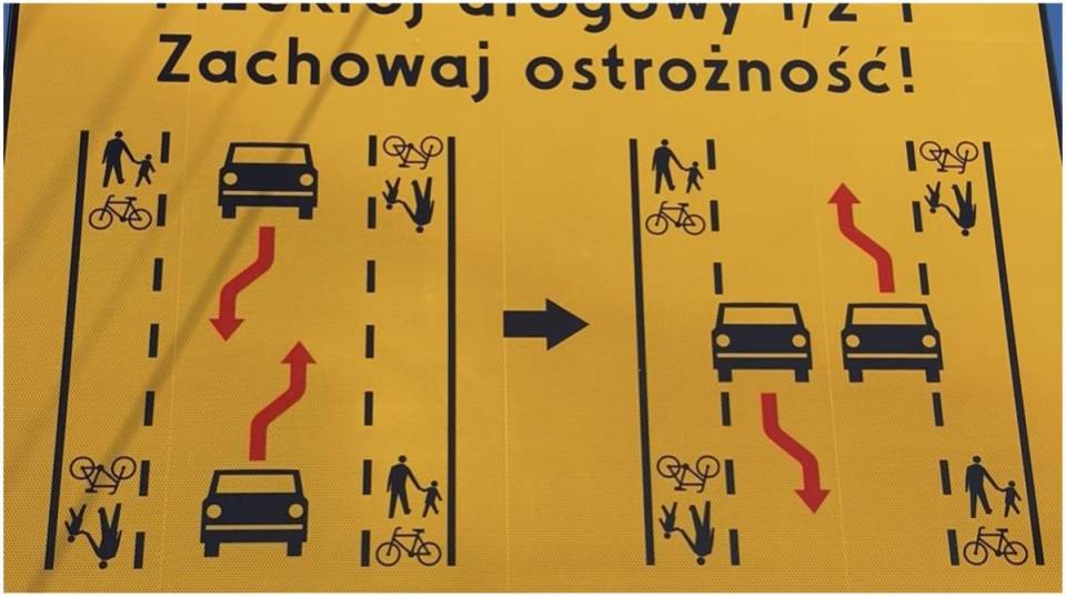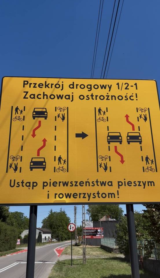Jeden pas dla samochodów, a dwa skrajne dla pieszych i rowerzystów - nowa organizacja ruchu już obowiązuje na ul. Świerczowskiej. To innowacyjne rozwiązanie – pierwsze tego rodzaju w województwie łódzkim, które ma poprawić bezpieczeństwo i ułatwić poruszanie się na drodze, mimo braku chodnika.