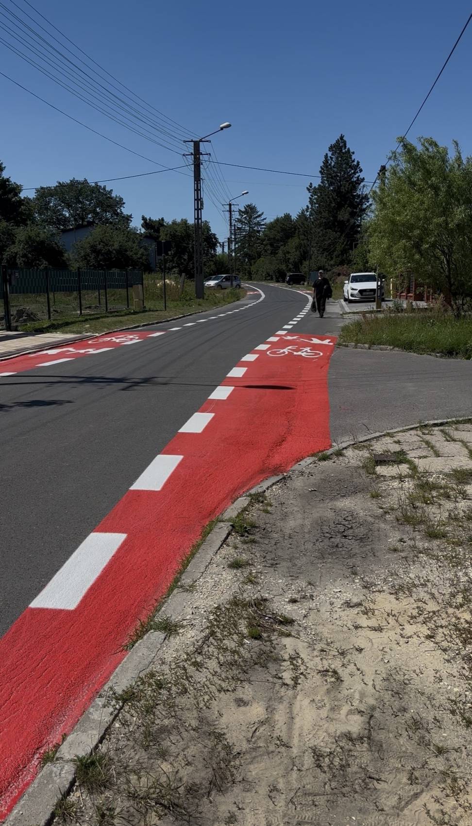 Tymczasowe rozwiązanie wprowadzono, by zwiększyć bezpieczeństwo pieszych i rowerzystów - dopóki nie powstanie tu chodnik i ścieżka rowerowa, a jezdnia zostanie wyremontowana. To pierwsze tego rodzaju rozwiązanie w regionie łódzkim i jedno z niewielu w kraju, z powodzeniem stosowane m.in. w krajach Skandynawii.