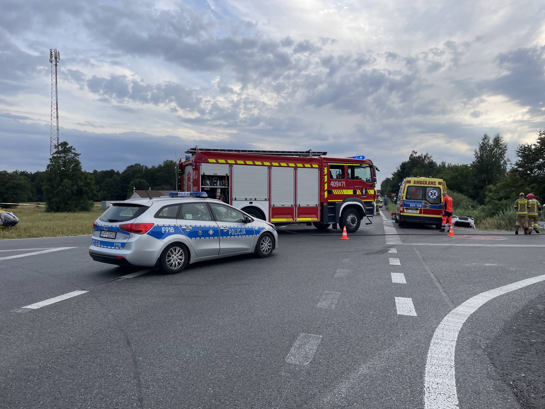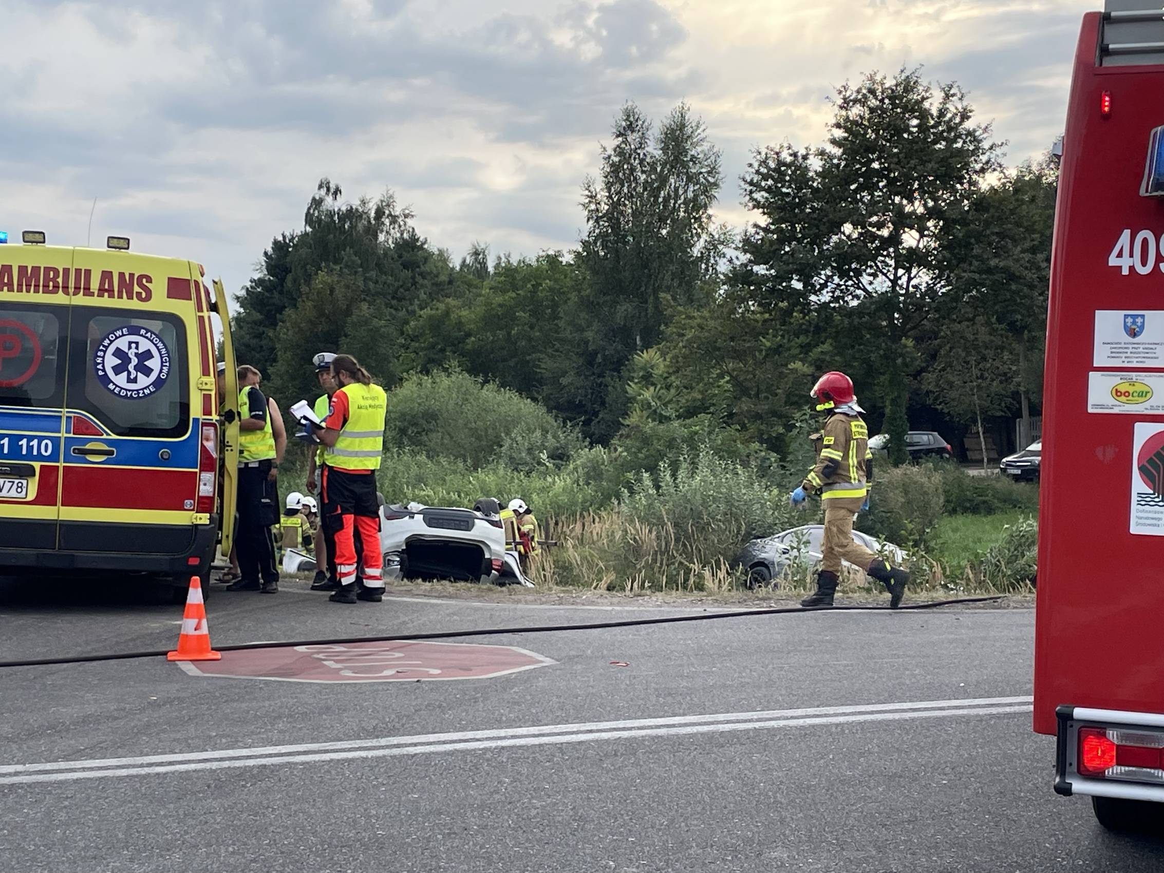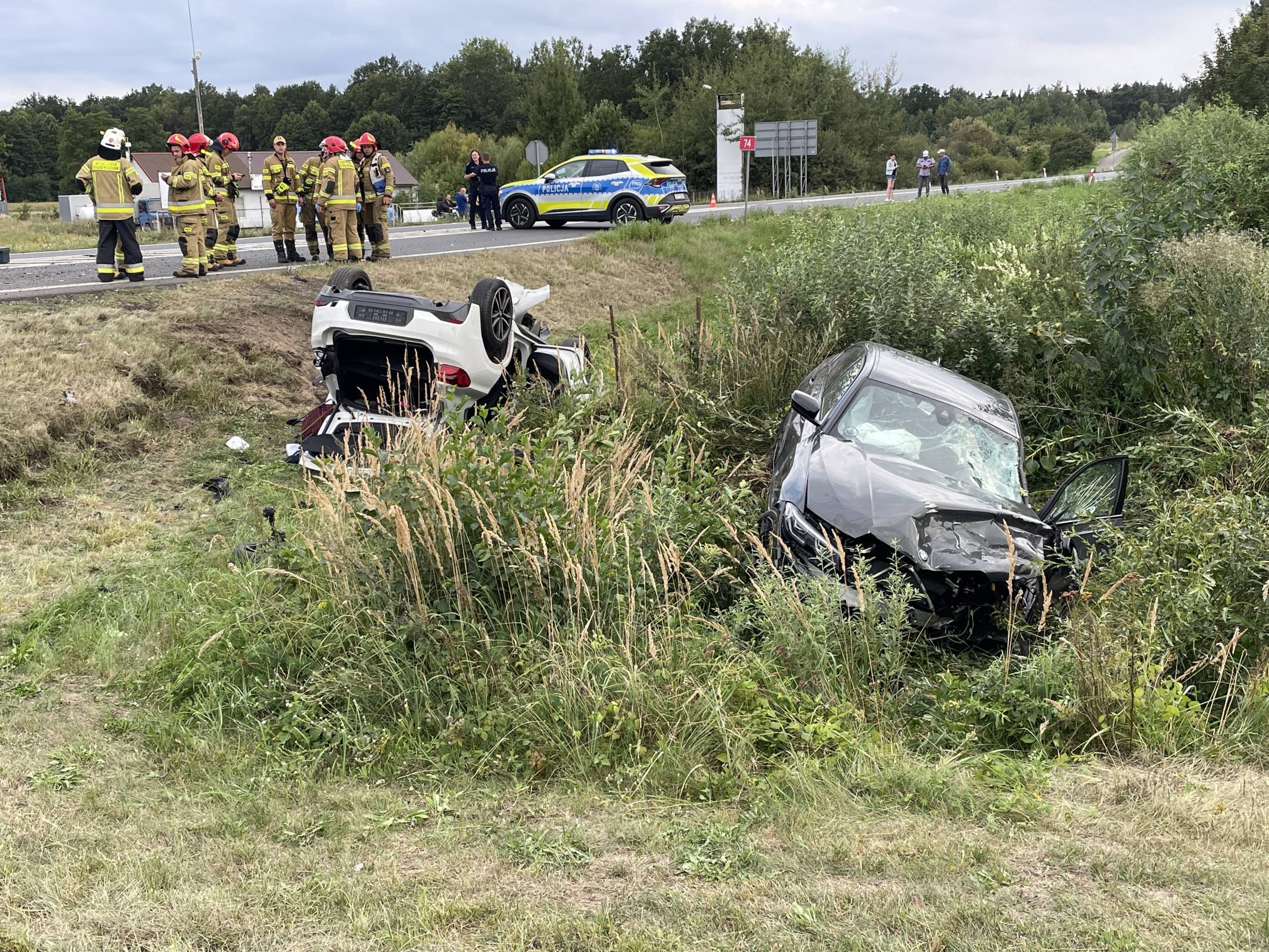 Najciężej poszkodowany został pasażer BMW X2 – 71-letni mężczyzna, który śmigłowcem LPR został przetransportowany do szpitala. Pozostałe osoby – w tym dziecko – trafiły do szpitala karetkami pogotowia.
