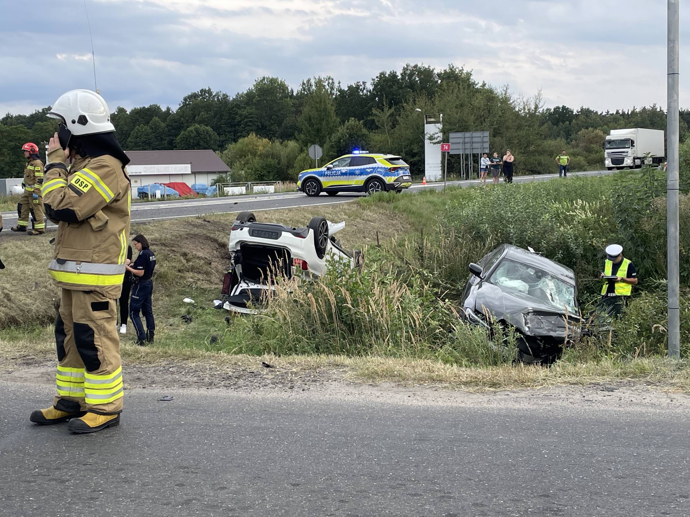 Poważny wypadek na DK 74 w Grudnej – pięć osób trafiło do szpitala, w tym 10-letni chłopiec [Foto, Wideo]