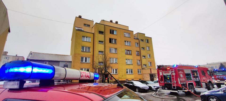 - Pokój dzienny był cały objęty ogniem, było bardzo duże zadymienie, a gęsty dym wydobywał się przez wszystkie możliwe otwory okienne, w tym także na klatkę schodową - dodaje Stefanek.