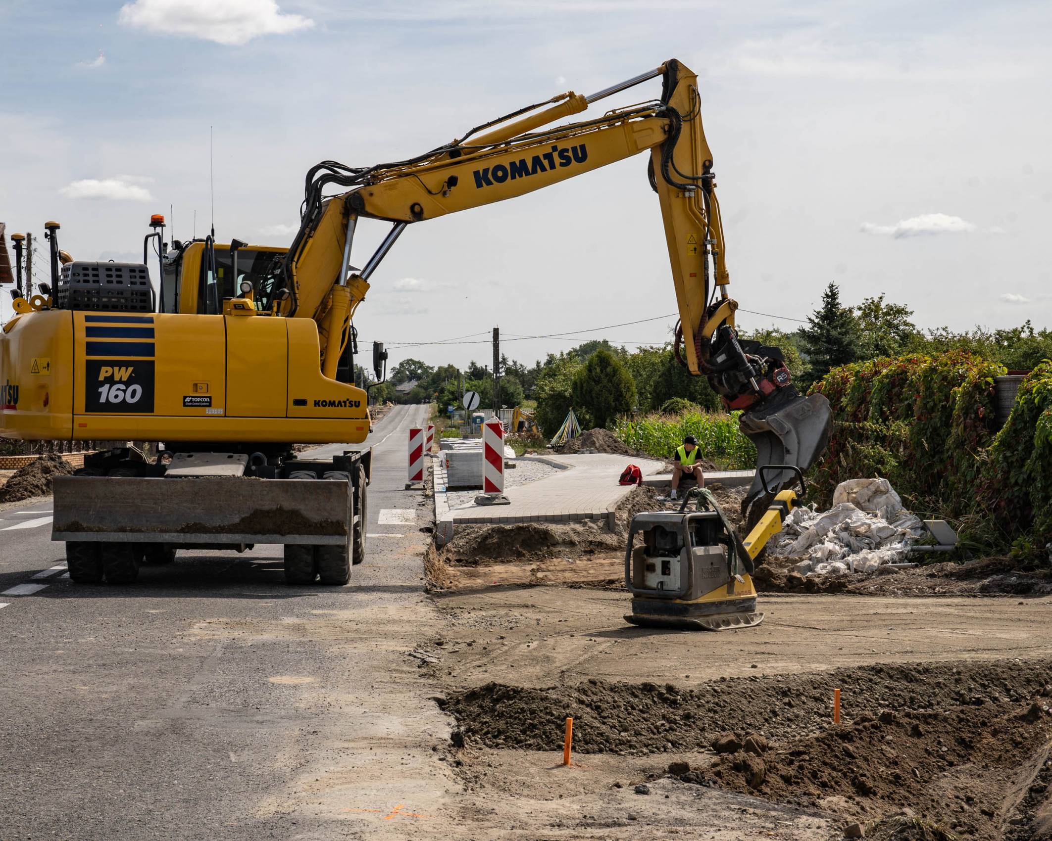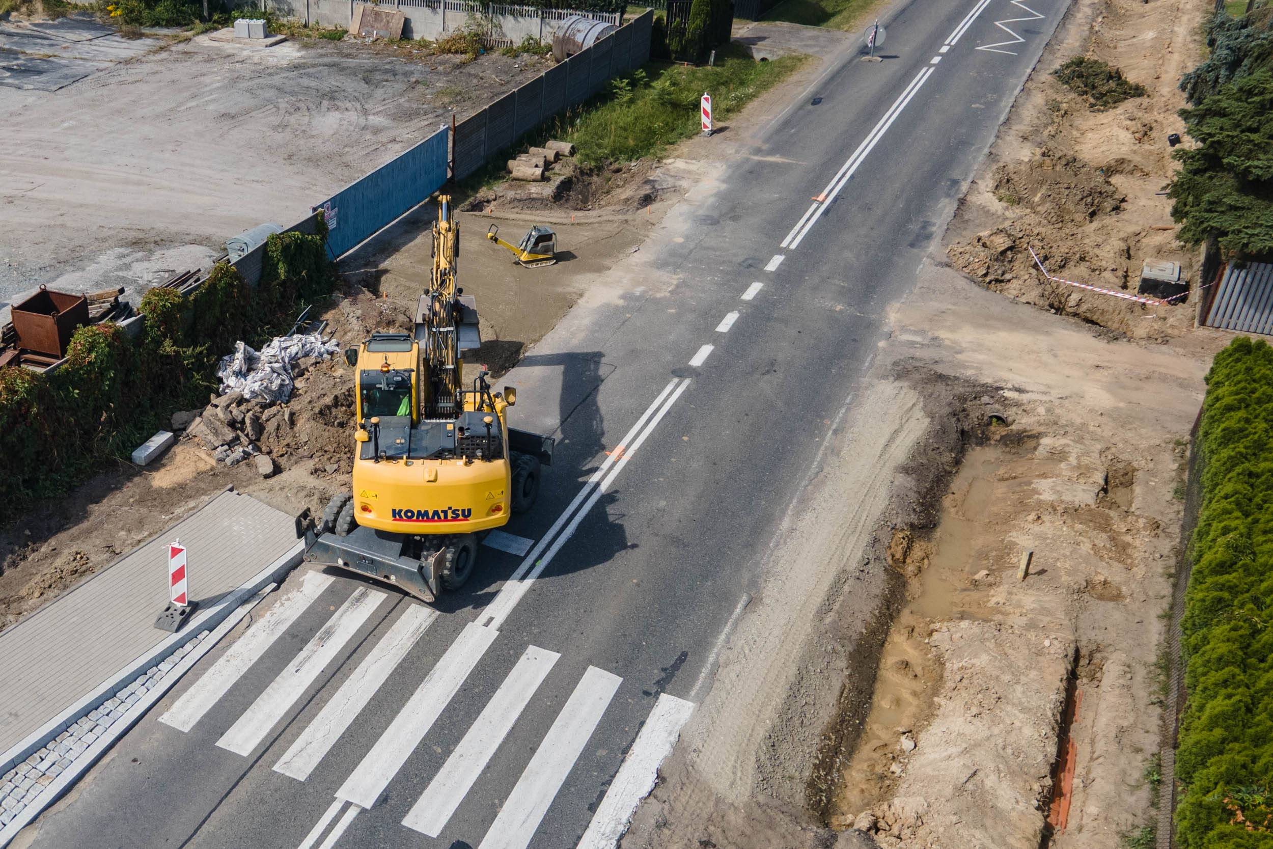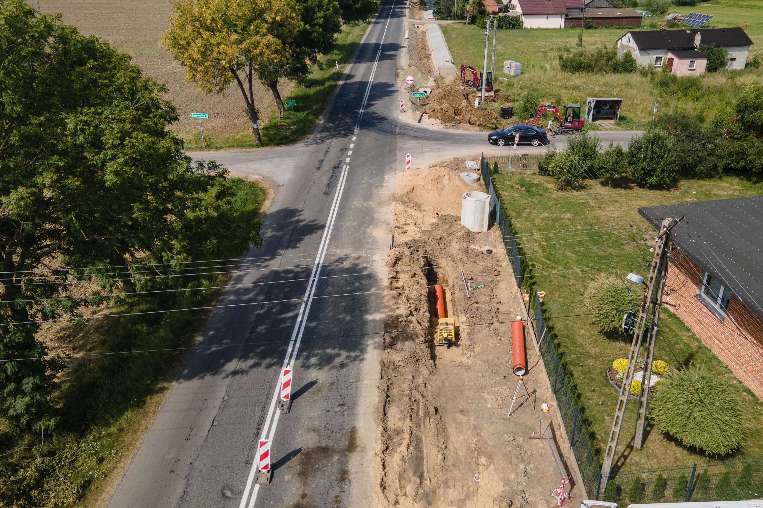 Rusociny z nowym chodnikiem, przystankami i oświetleniem, prace w toku [Foto]