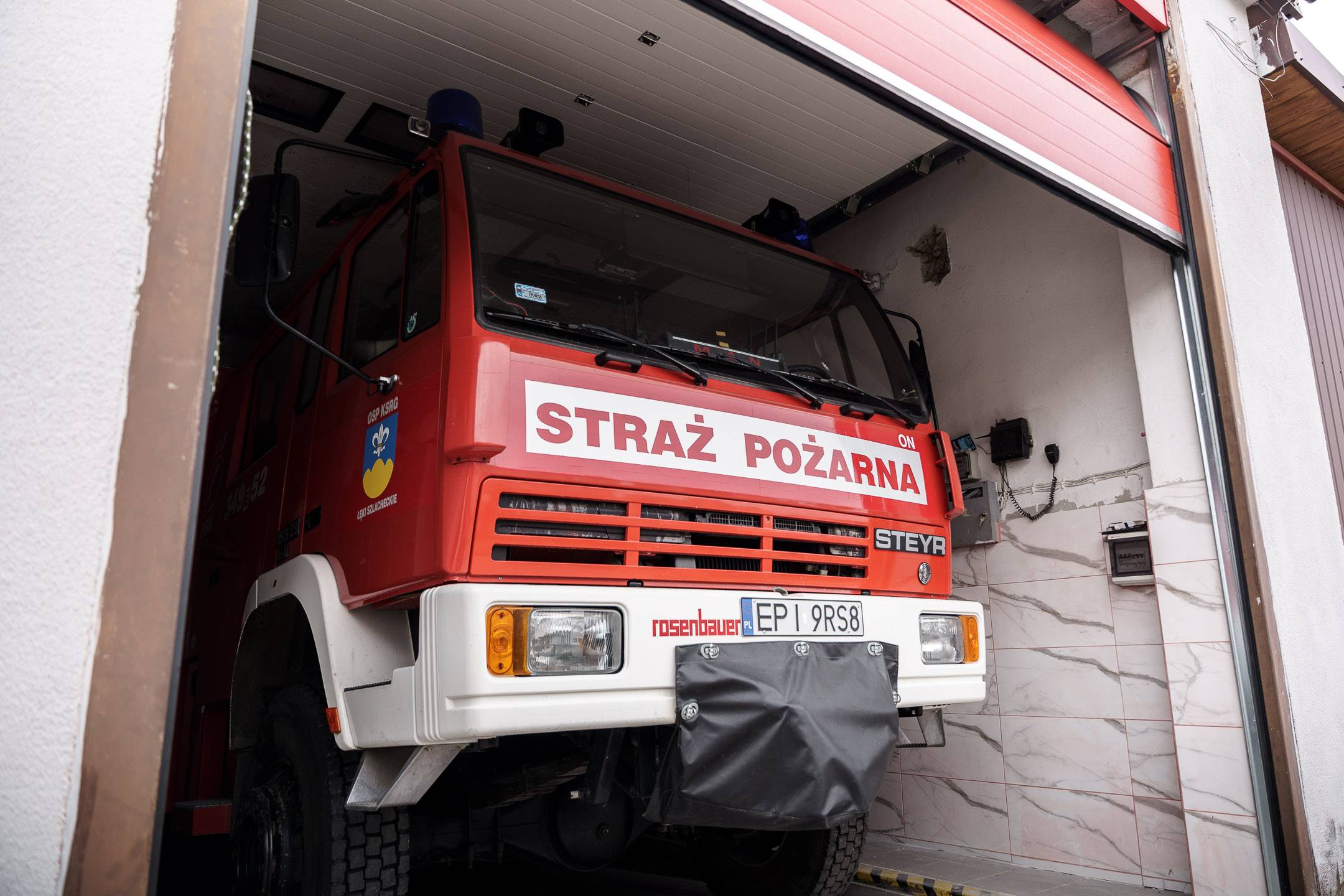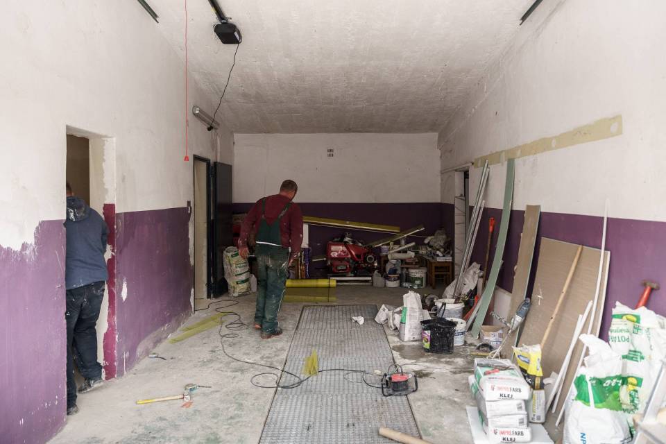 Ekipa remontowa pracuje też w strażnicy OSP w Łękach Szlacheckich. Tu już zostały wymienione bramy wjazdowe, a całe zadanie obejmuje również remont garażu, w którym, jak liczą strażacy, wkrótce pojawi się nowy, mały wóz bojowy.