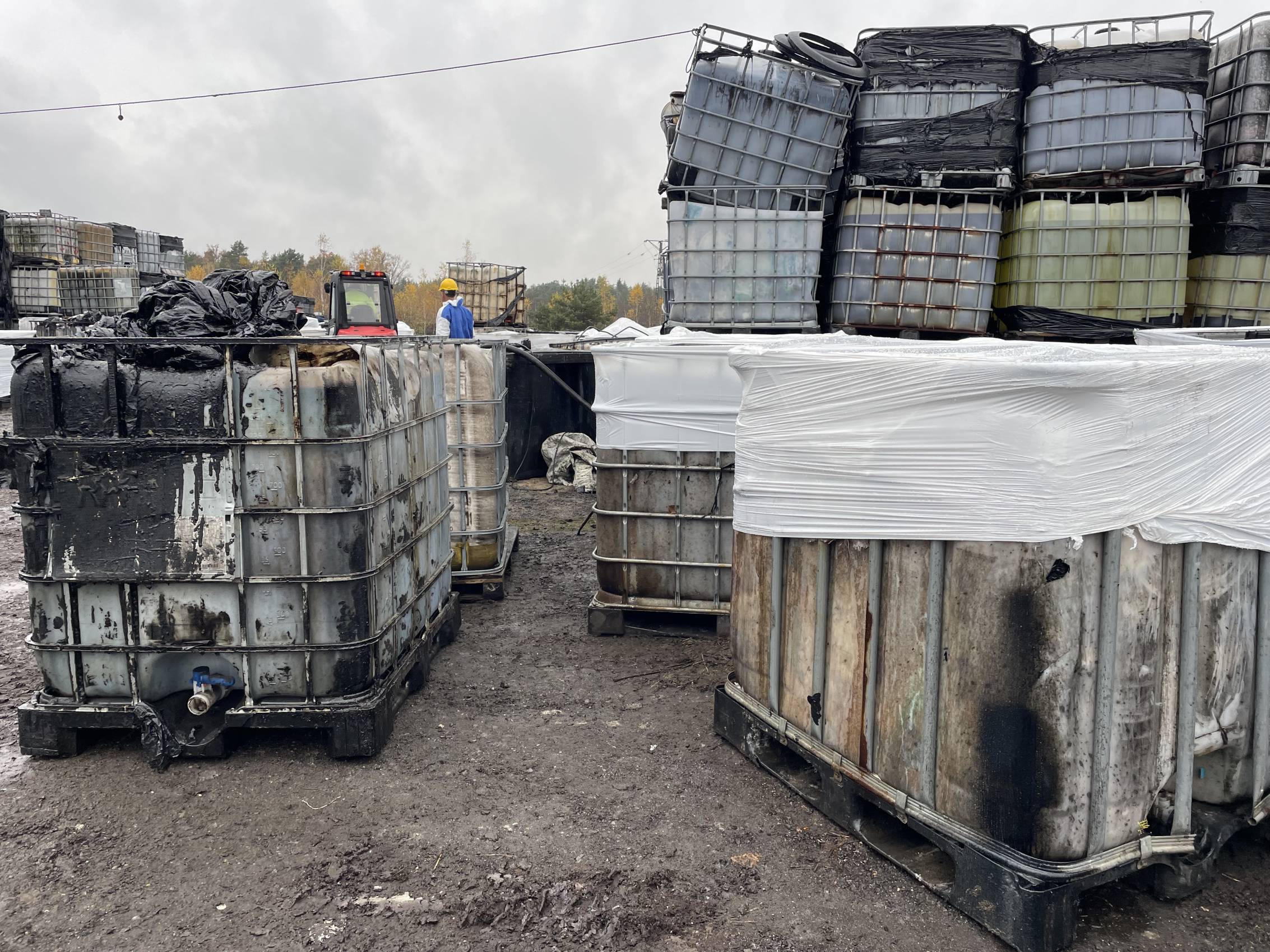 W Chabielicach rozpoczął się kolejny, kluczowy etap prac związanych z usuwaniem niebezpiecznych odpadów. W poniedziałek, 3 listopada, ze składowiska odjechało już kilka transportów z mauzerami zawierającymi substancje niebezpieczne – w momencie naszej obecności był to trzeci konwój. To początek intensywnej akcji, która ma doprowadzić do całkowitego oczyszczenia terenu.