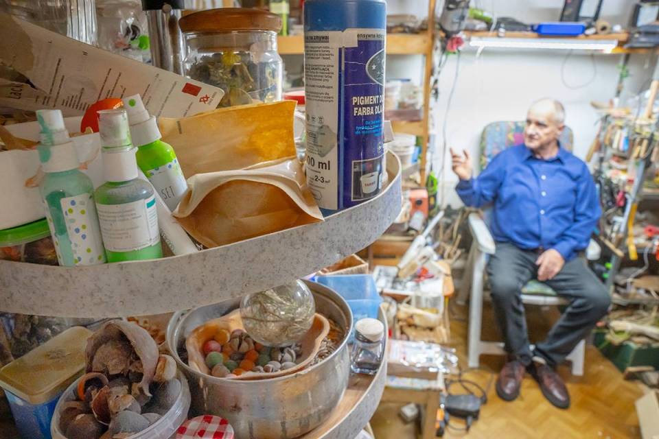Wyjątkowa pasja trwa od kilku dekad. Pan Mariusz pochodzi z Żarnowicy Małej, ale dzieciństwo spędził w pałacu biskupów kujawskich w Wolborzu, siedzibie szkoły rolniczej, w której uczył ojciec artysty. – Prace plastyczne były w naszym domu zawsze obecne – wspomina. To wtedy uczył się robienia ozdób w orzechach i wyplatania np. koszy ze sznurka i wikliny. Z wykształcenia jest rolnikiem, więc pracę w gospodarstwie łączył z rękodziełem.