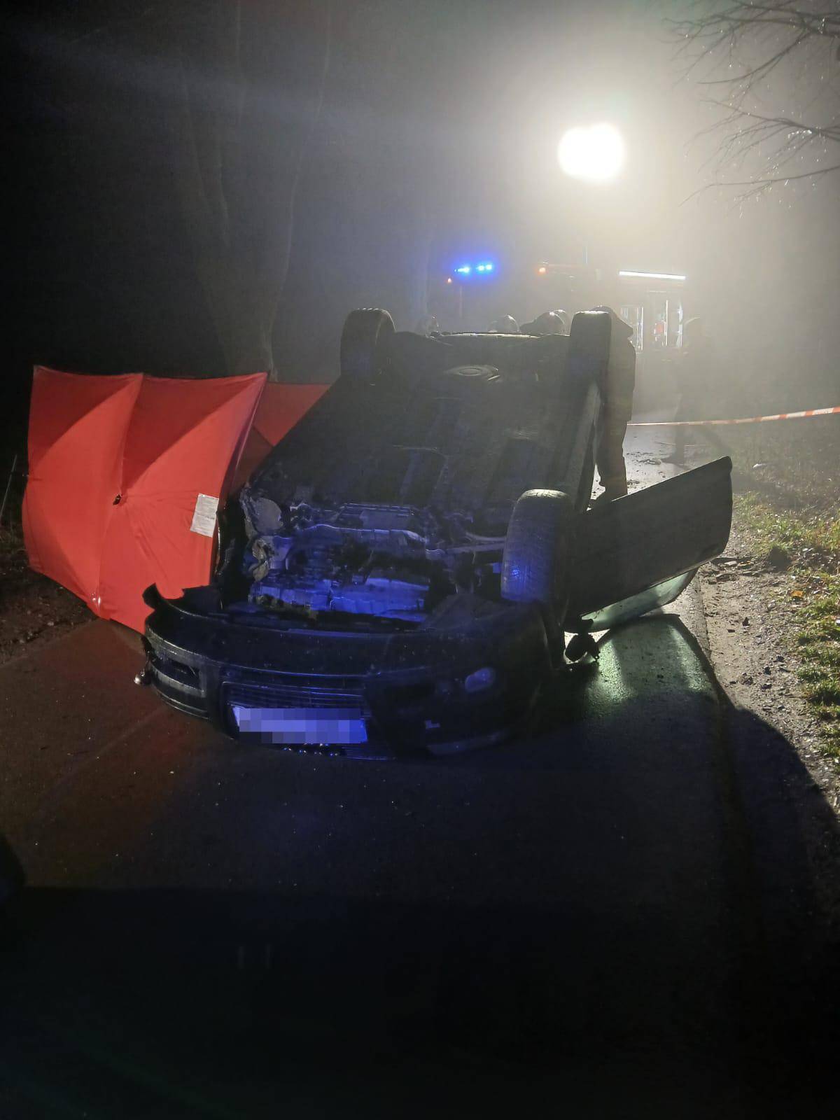 Według wstępnych ustaleń osobowy samochód z nieustalonych na razie przyczyn zjechał z drogi, uderzył w drzewo, a osobowe audi dachowało. 35-letni kierujący poniósł śmierć na miejscu. Ratownicy, którzy przybyli na miejsce zdarzenia, odstąpili od prowadzenia resuscytacji krążeniowo-oddechowej ze względu na brak oznak życia i rozległe obrażenia.
