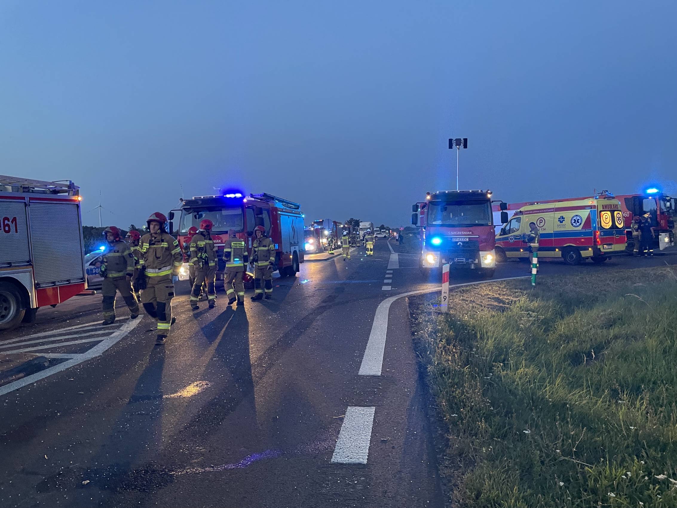 Na drodze krajowej nr 74, na styku powiatów bełchatowskiego i wieluńskiego, doszło do poważnego wypadku z udziałem samochodu osobowego i cysterny przewożącej gaz. W wyniku zderzenia pojazd ciężarowy zapalił się, a droga została całkowicie zablokowana w obu kierunkach. Na miejscu trwają intensywne działania służb ratunkowych. Utrudnienia mogą potrwać nawet do rana.